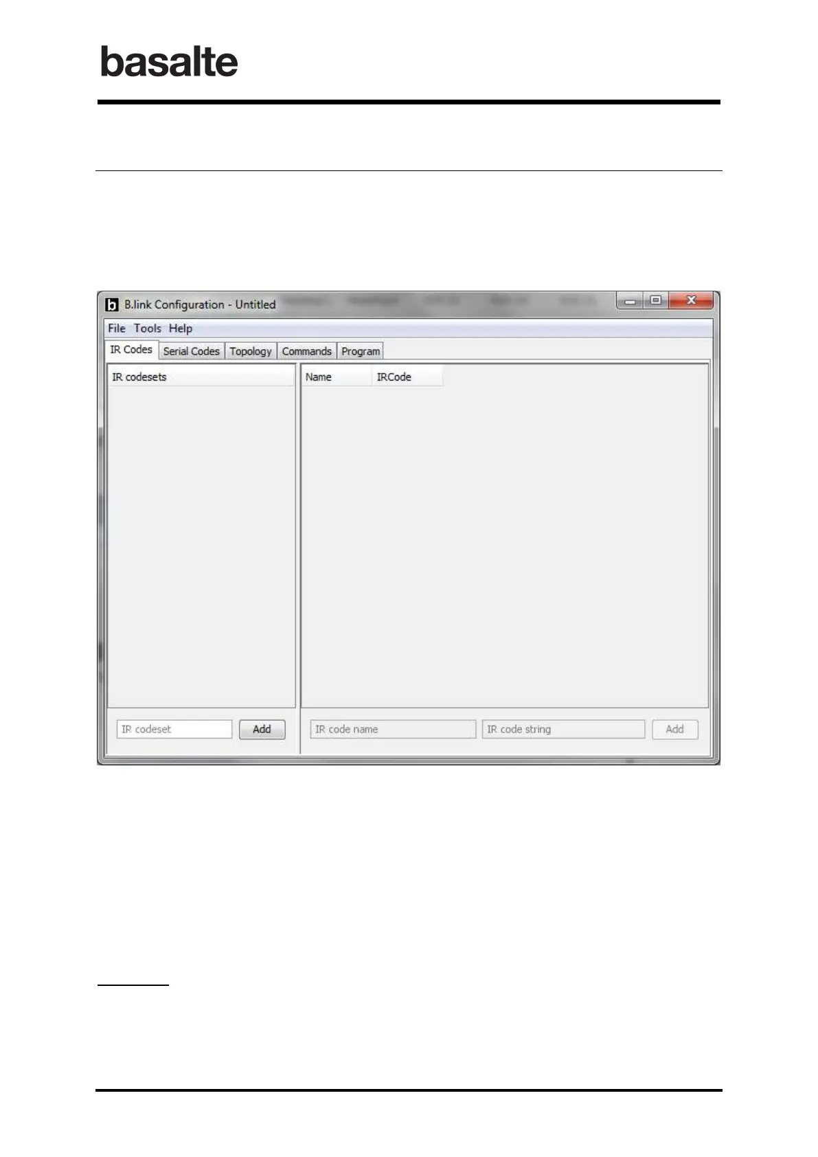 The B.link Configuration software allows managing your set IR and Serial Codes, defining the