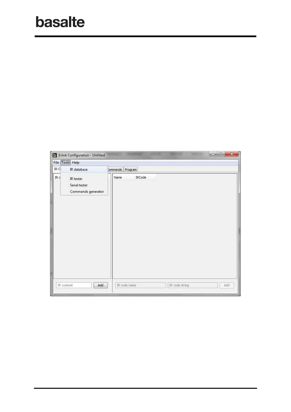 1. After launching the B.link Configuration software, in the Tools menu select IR database.