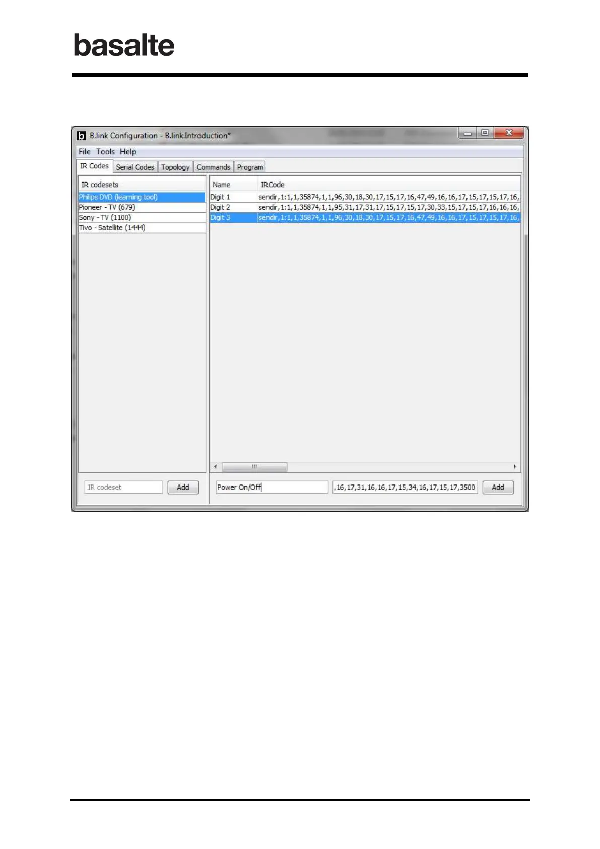 Copy the IR Codes to B.link Configuration Software – IR Codeset