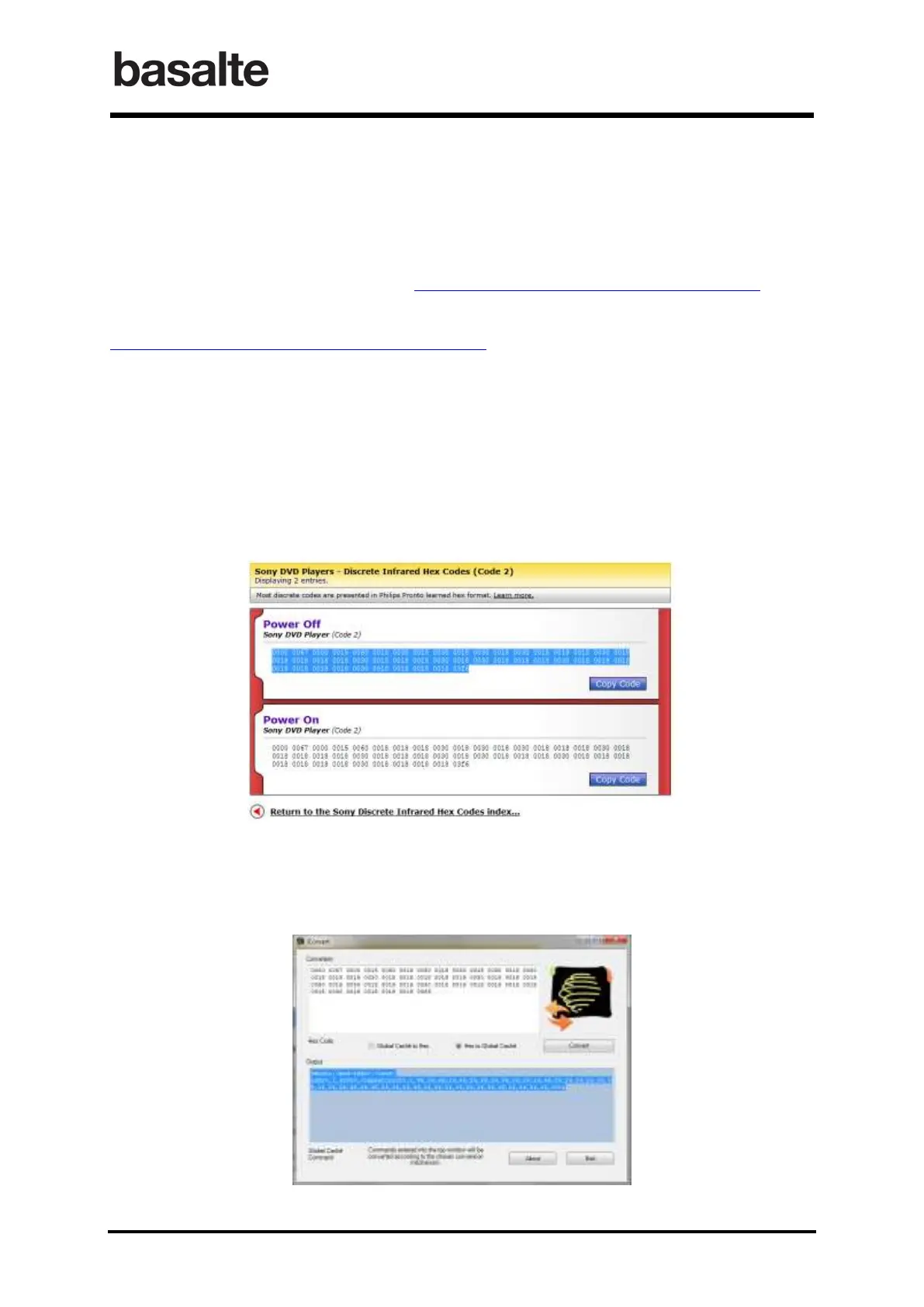 These codes are provided in Pronto hex format available and need to be converted to the B.link