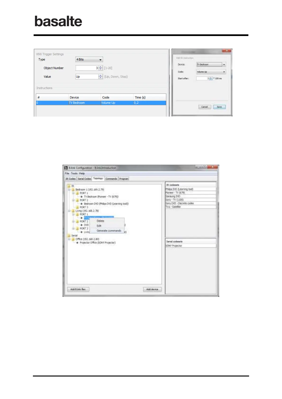commands for a device with a configurable 1 Byte trigger object. In the Topology window, click