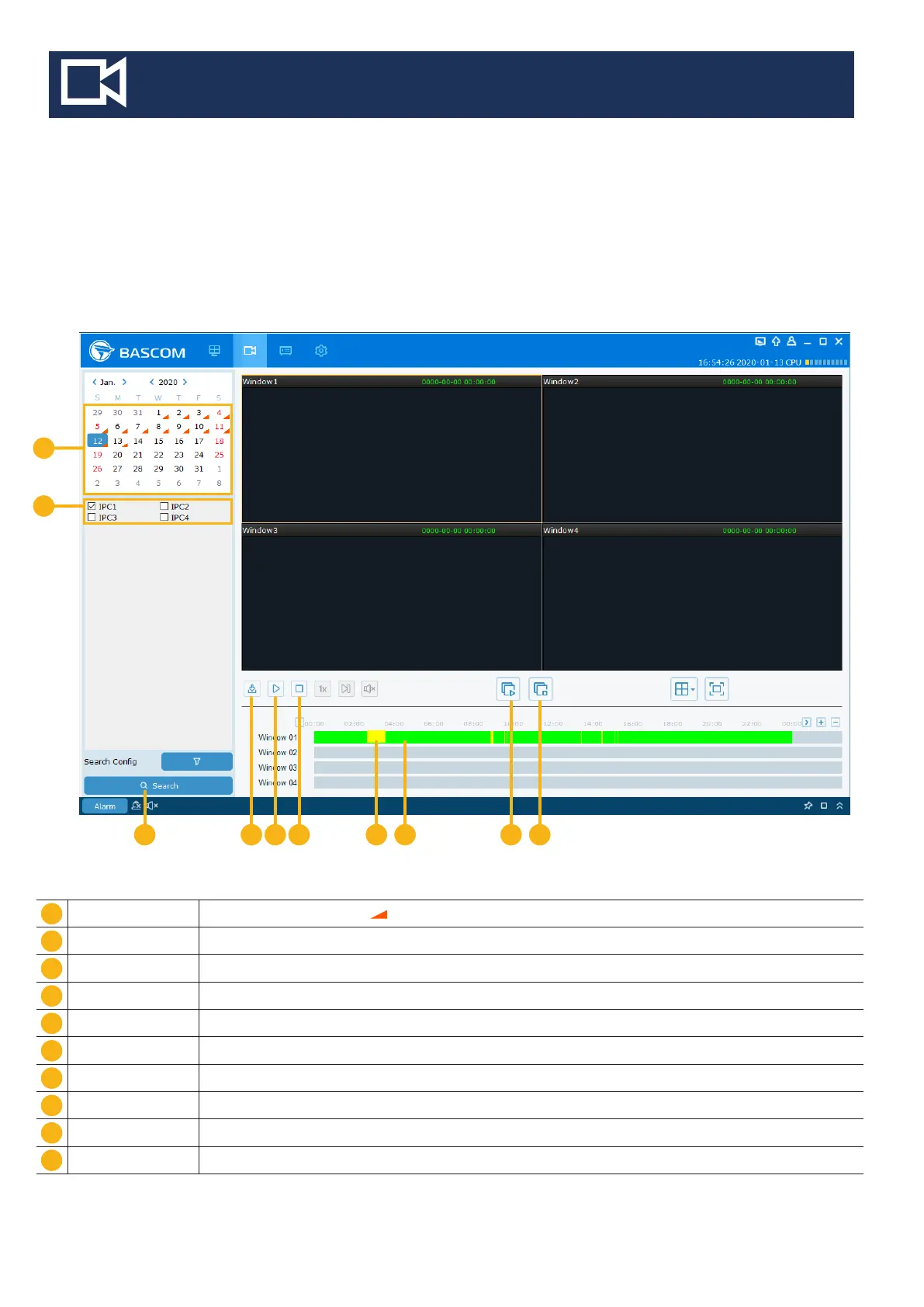 Search Date Search by a date to play back. Note : Days with recordings show an orange triangle