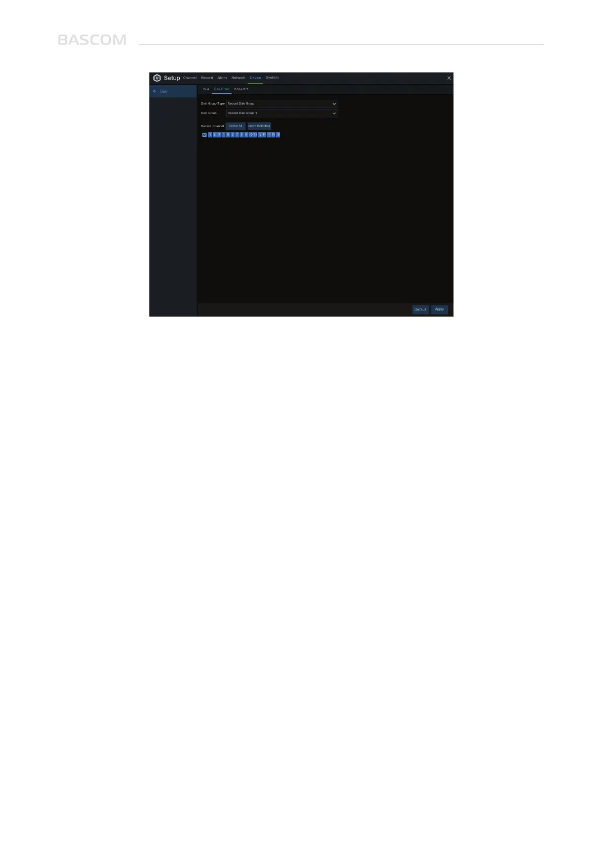 3. Click the numbered boxes representing channels to record channels to HDDs in the selected group.