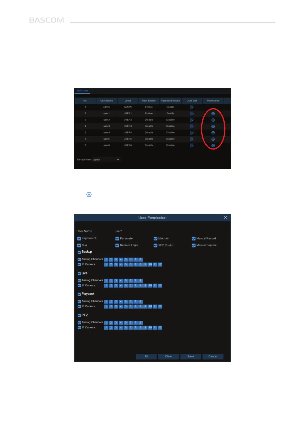 2. Check the boxes next to any system menus or capabilities you would like the user to access. Click