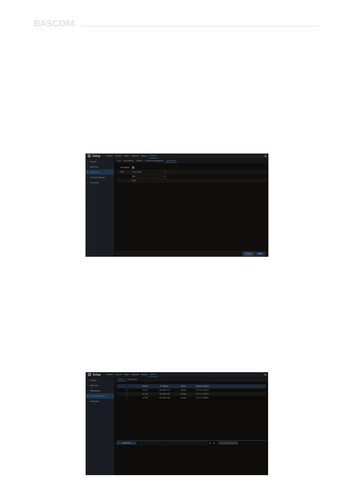 This menu allows the system to auto reboot regularly. It is recommended to leave this function