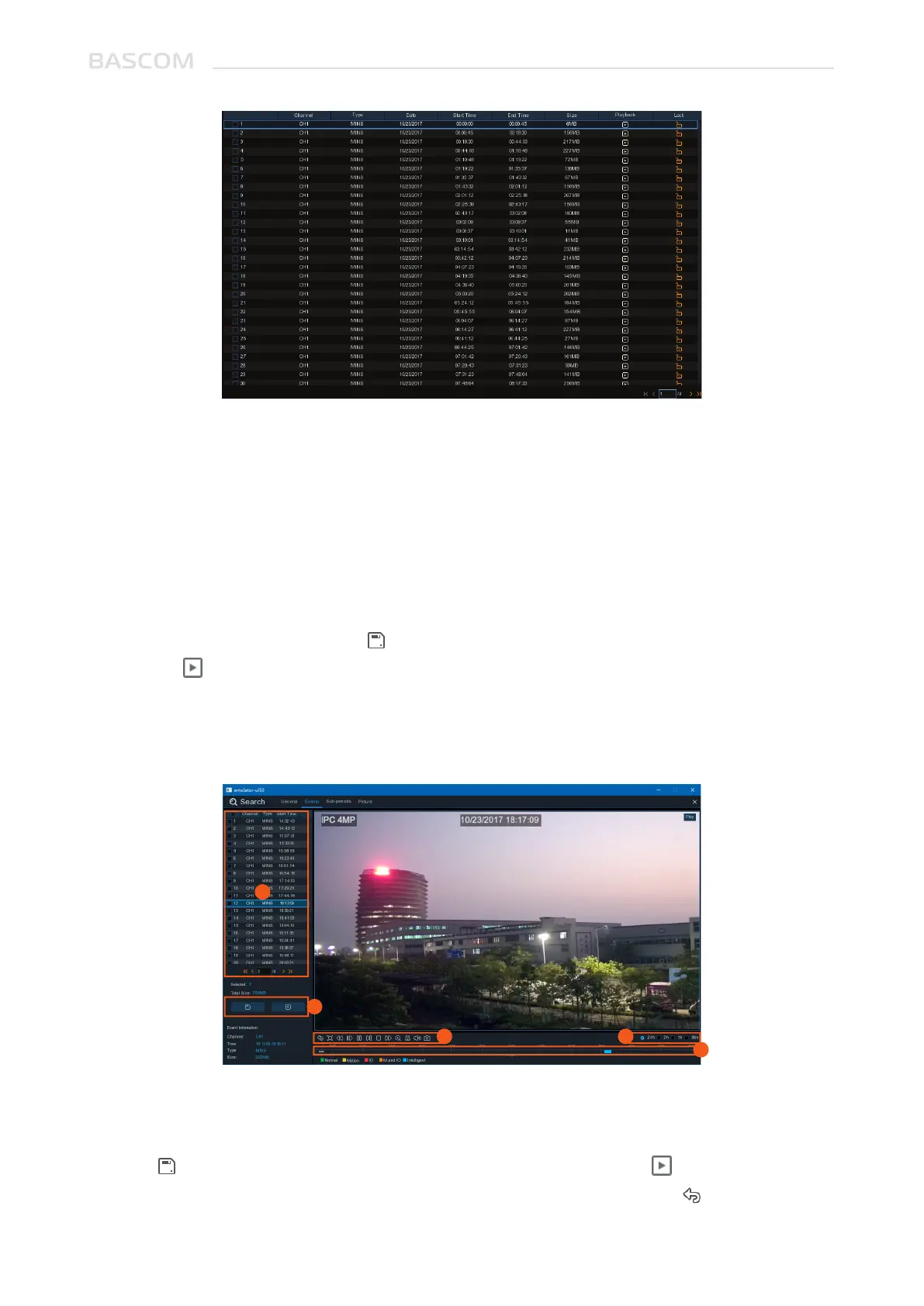 2. Click icon to save your selected event videos to USB flash drive. Click icon to play video.