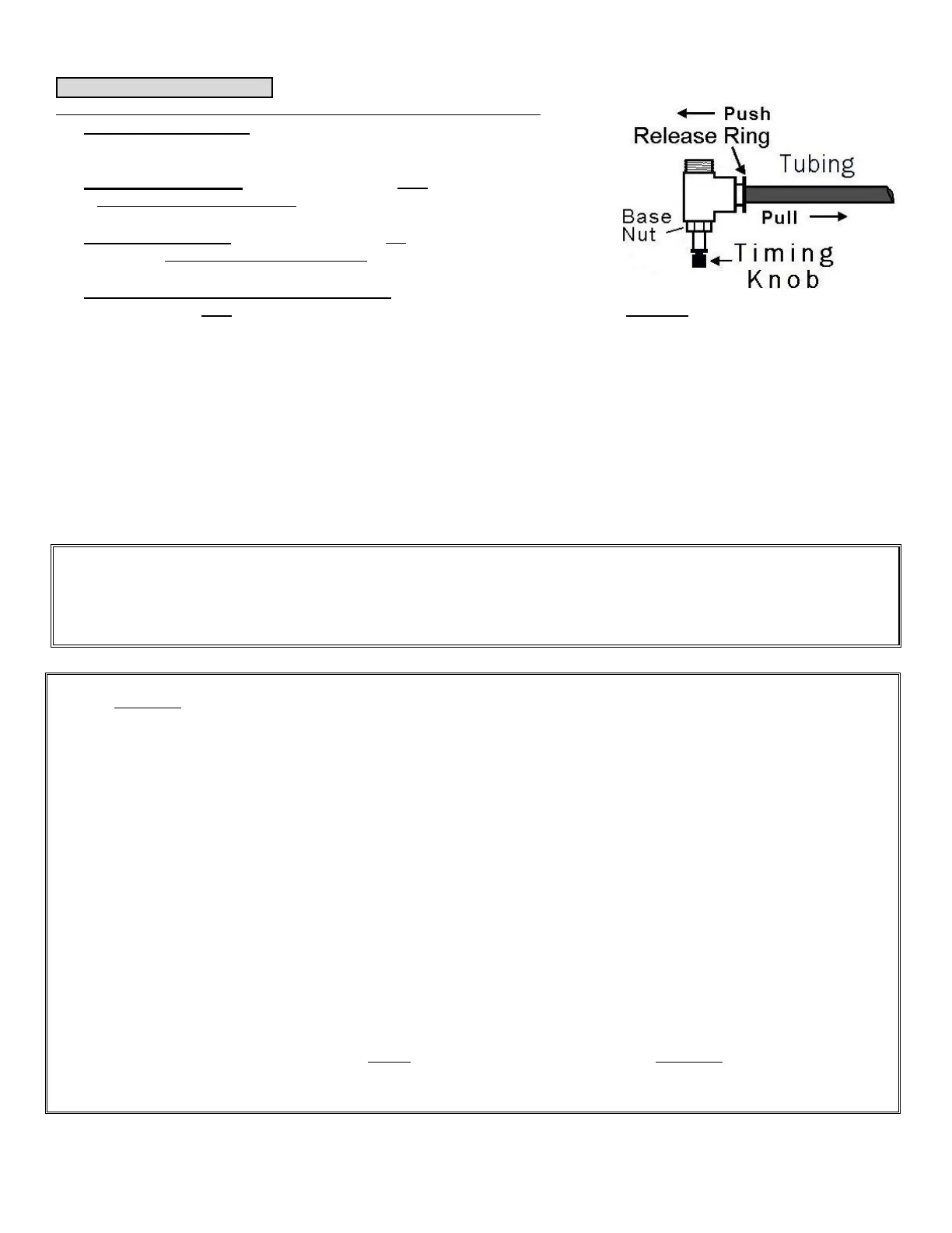 Pump runs too long: ¼ Turn Timing Knob left (counter-clockwise)
