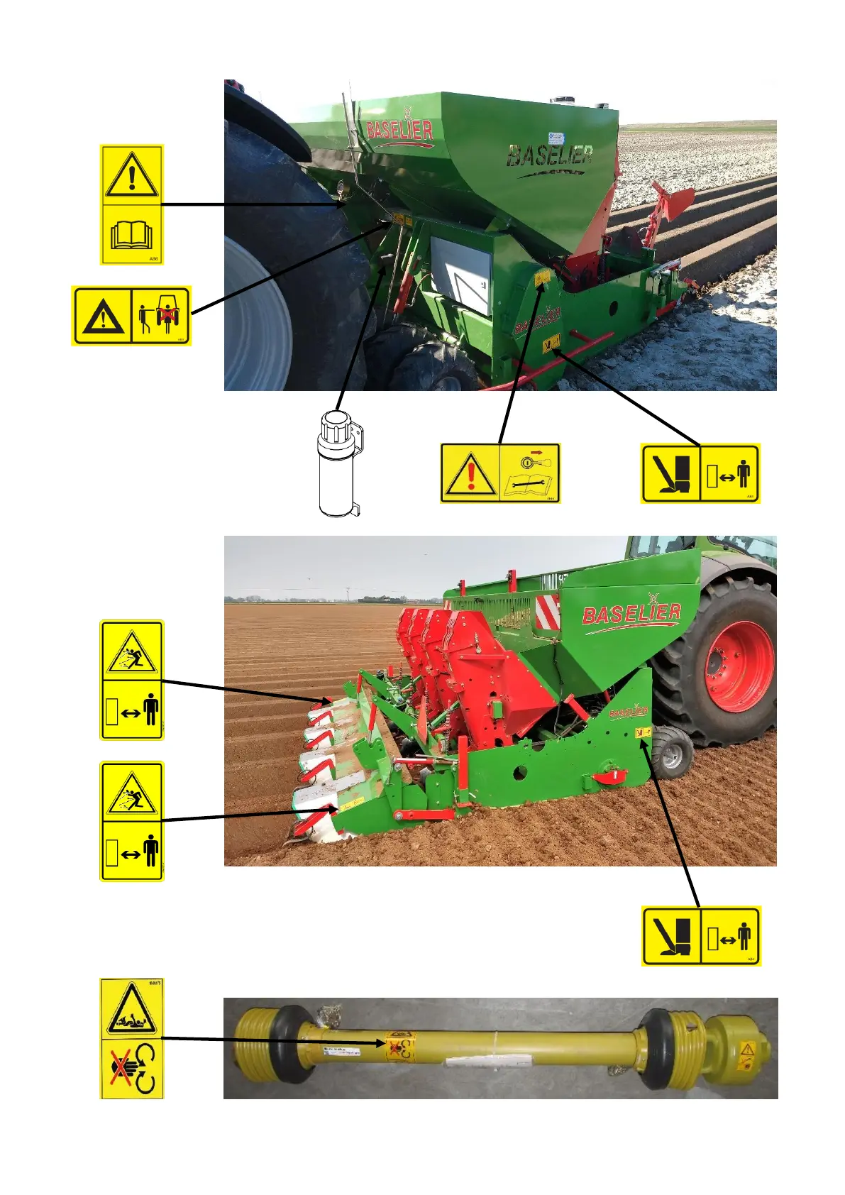 POSITION OF THE SAFETY LABELS ON THE MACHINE