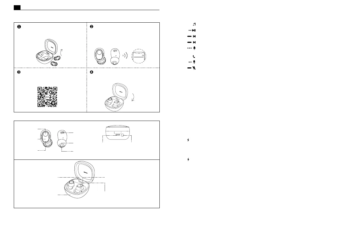 Desconecte la conexión inalámbrica del teléfono móvil. Abra la tapa del estuche de carga y extraiga los