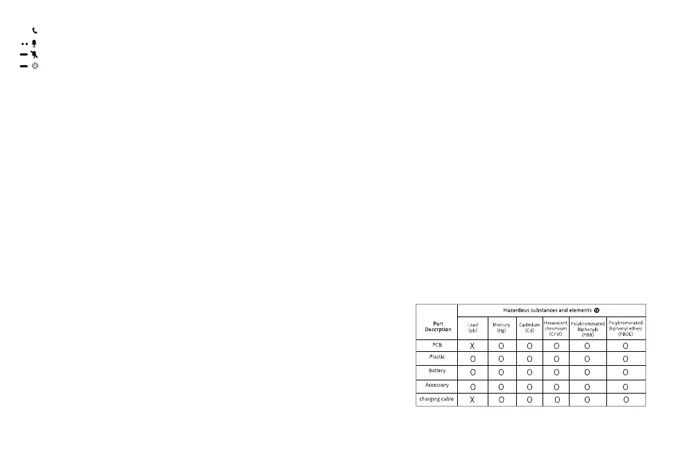 BISA mode: Tap and hold left or right earphone (L or R) for 1.5s BISA mode is o by