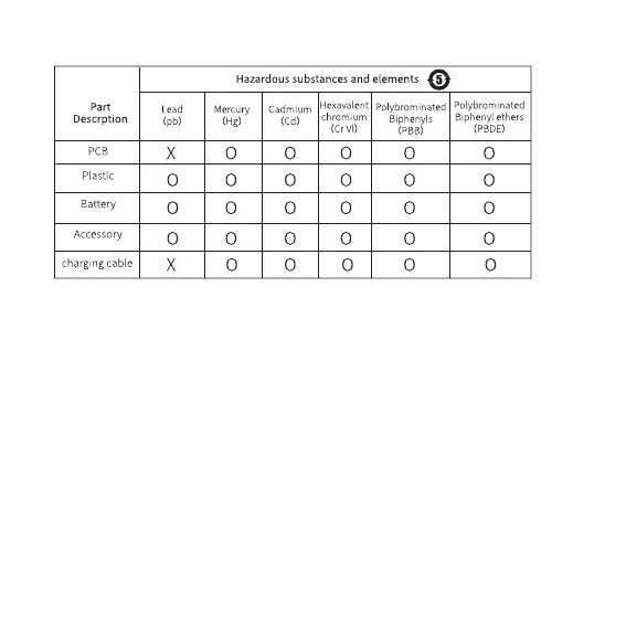 X: The content of harmful substances in at least one homogeneous material of this part exceeds the limit stipulated in GB/T 26572 standard.