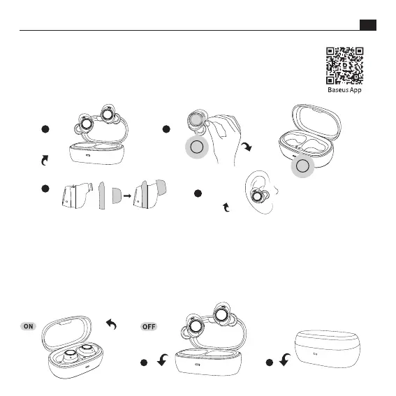 ① Escanee el código QR o descargue la aplicación Baseus para mejorar su experiencia de escucha con funciones