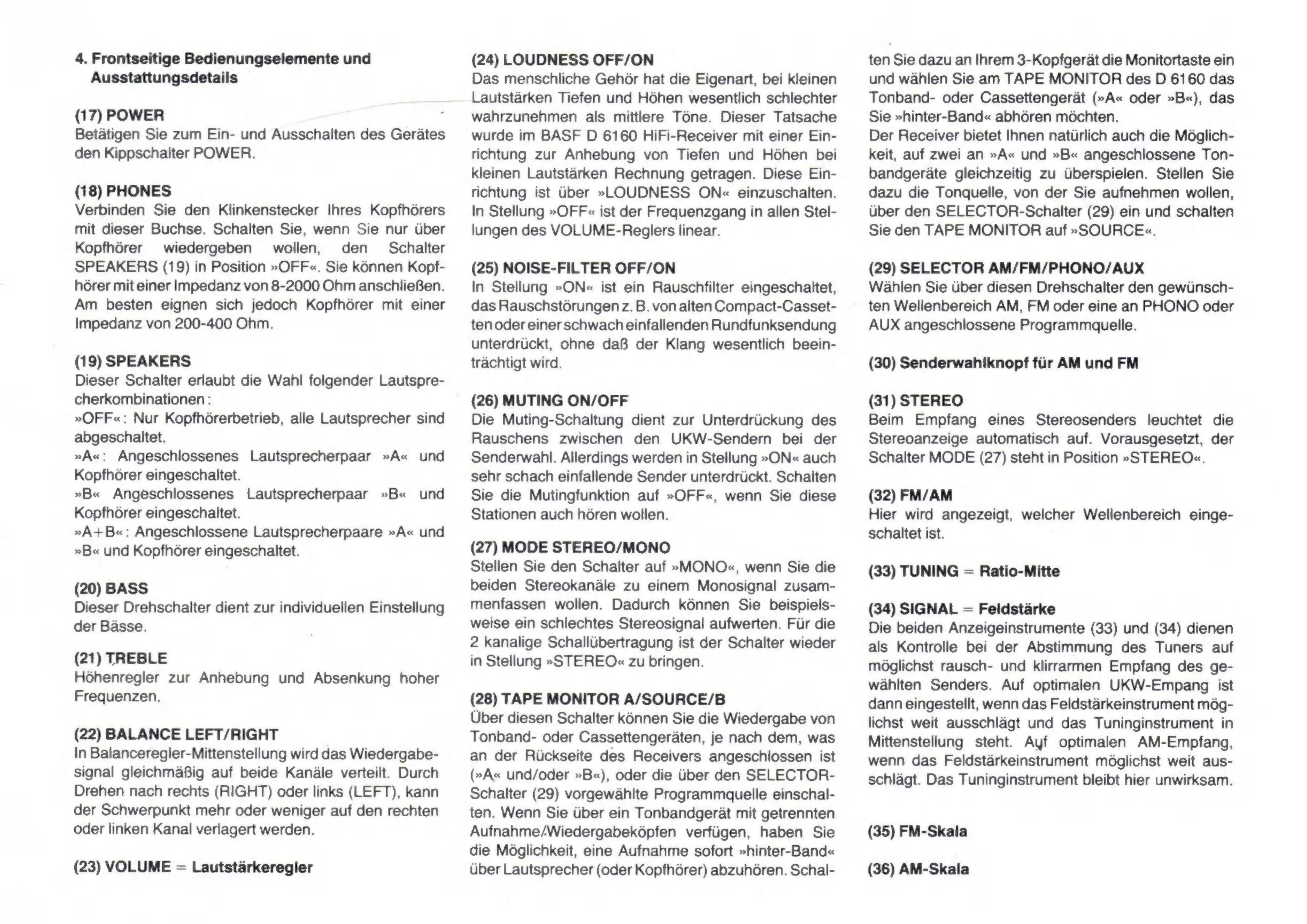 BASF D 6160 - Frontseitige Bedienungselemente und Ausstattungsdetails