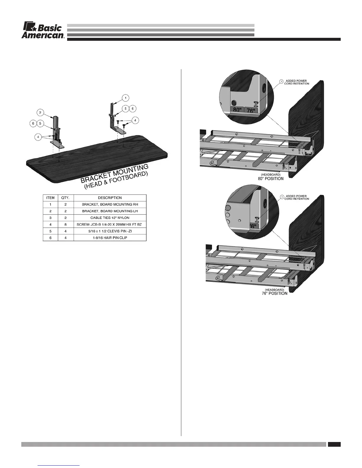 hole as shown above. 76" and 80" bracket