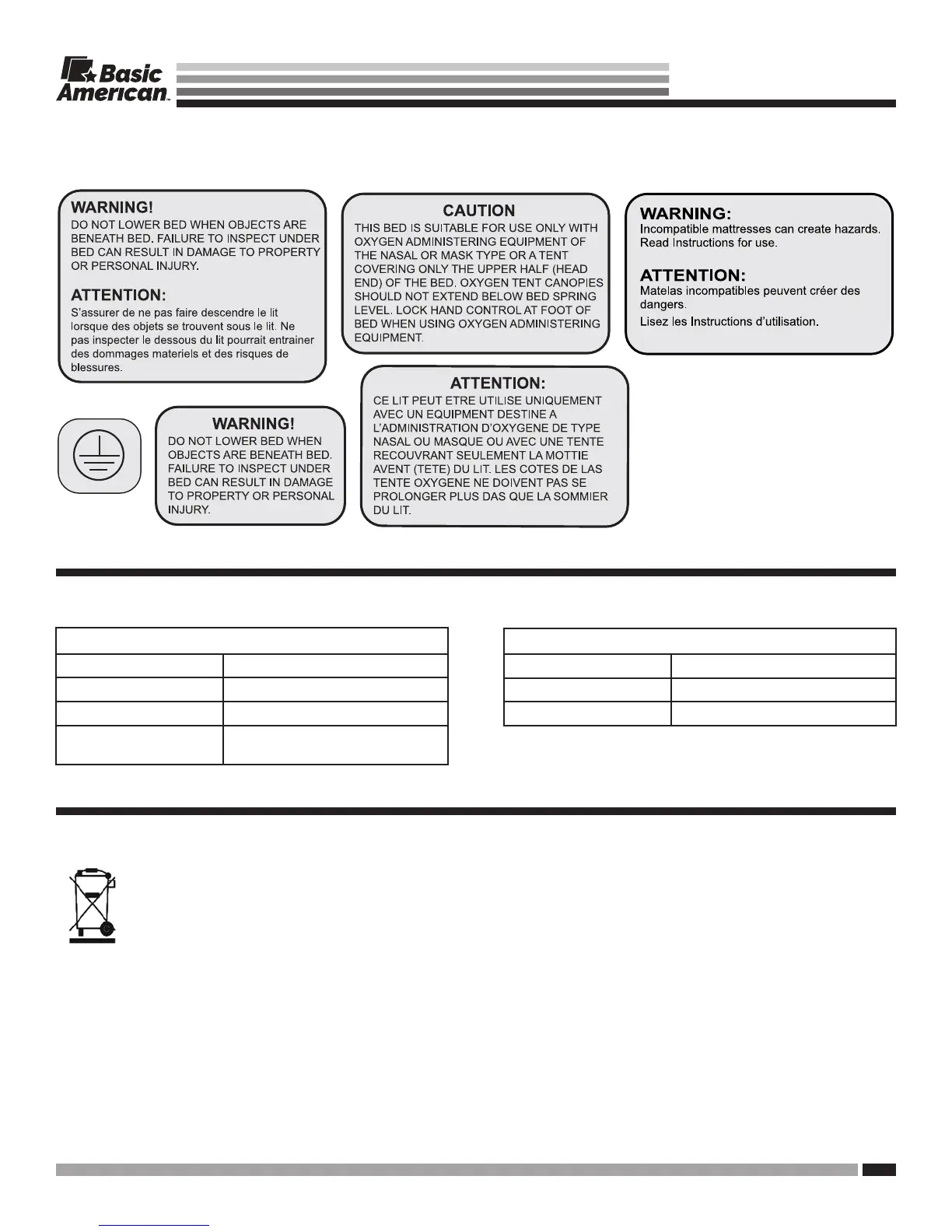 The following warning labels have been placed on the bed to help protect you and the bed from