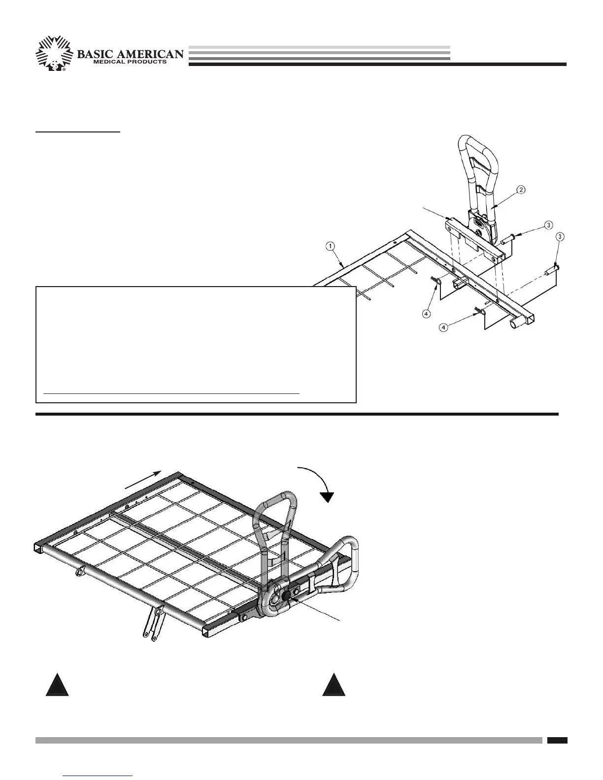 1. At the head end of the bed, position the Pivoting Assist Bar (#2)