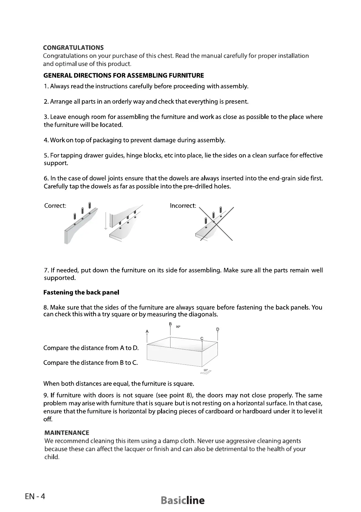 Basic Line VICENZA Cot 120 - Chest Vicenza;Vittoria; Chest Product Congratulations; Chest General Assembly Instructions; Fastening Chest Back Panel