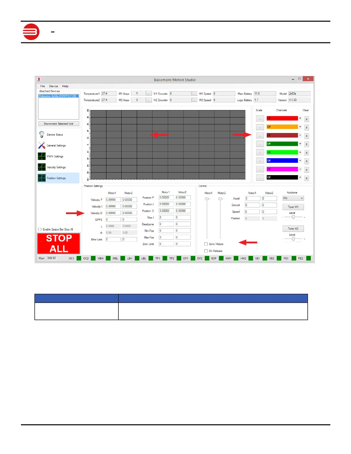 The Position settings screen is used to set the encoder and PID settings for position control. The