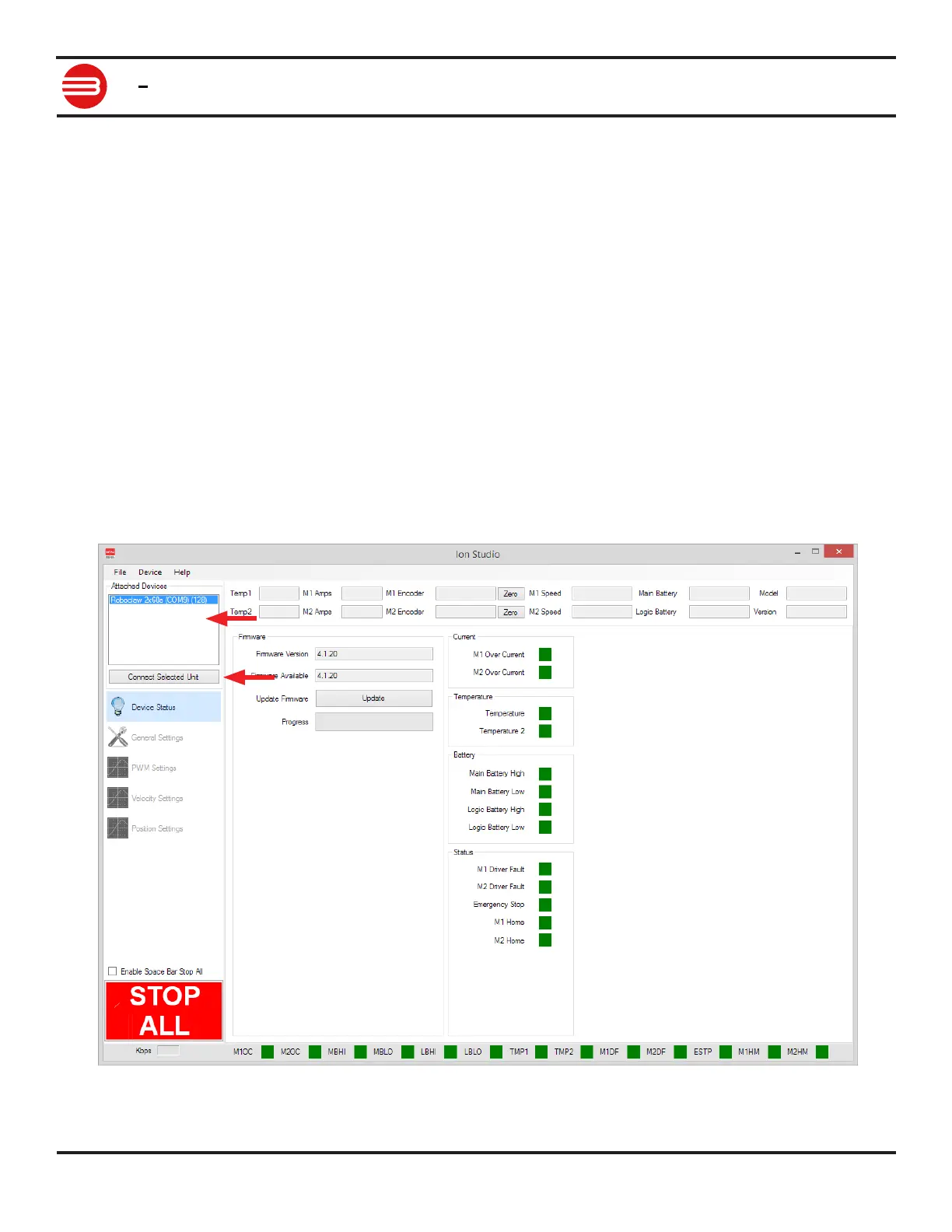 4. When RoboClaw is detected, it will appear in the Attached Device window (1).