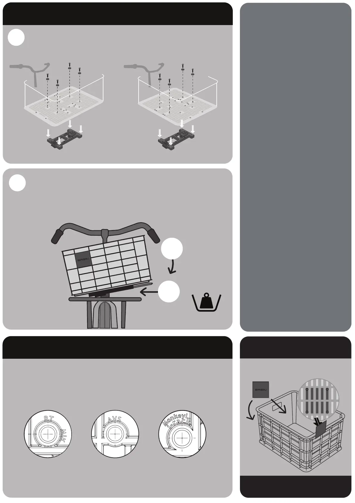 Place the MIK adapter plate underneath the bicycle crate. Tighten the screw and