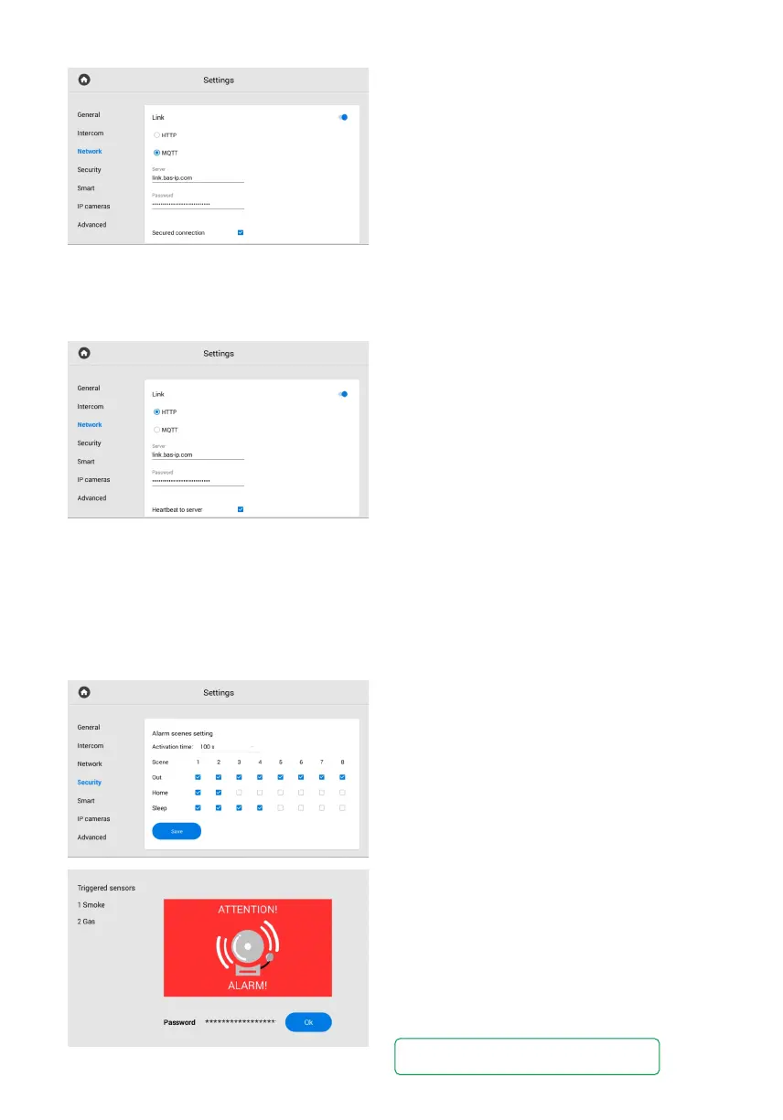 In this tab, you have access to configure the operation of security scenes, sensors, and user