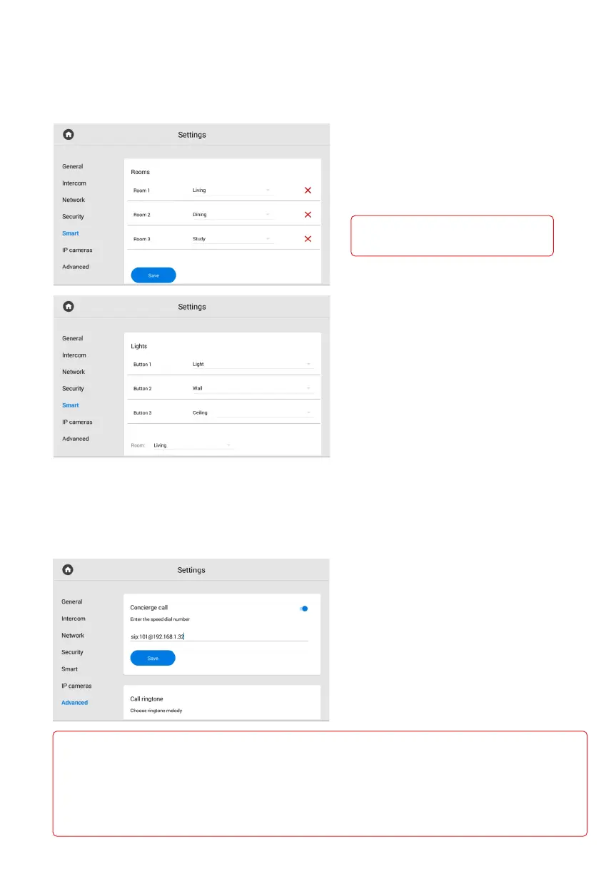 In the menu, you can configure the concierge call number, a ringtone, and standby mode,