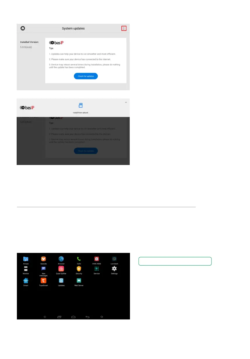 This menu displays installed applications and provide access to system settings. Here you can