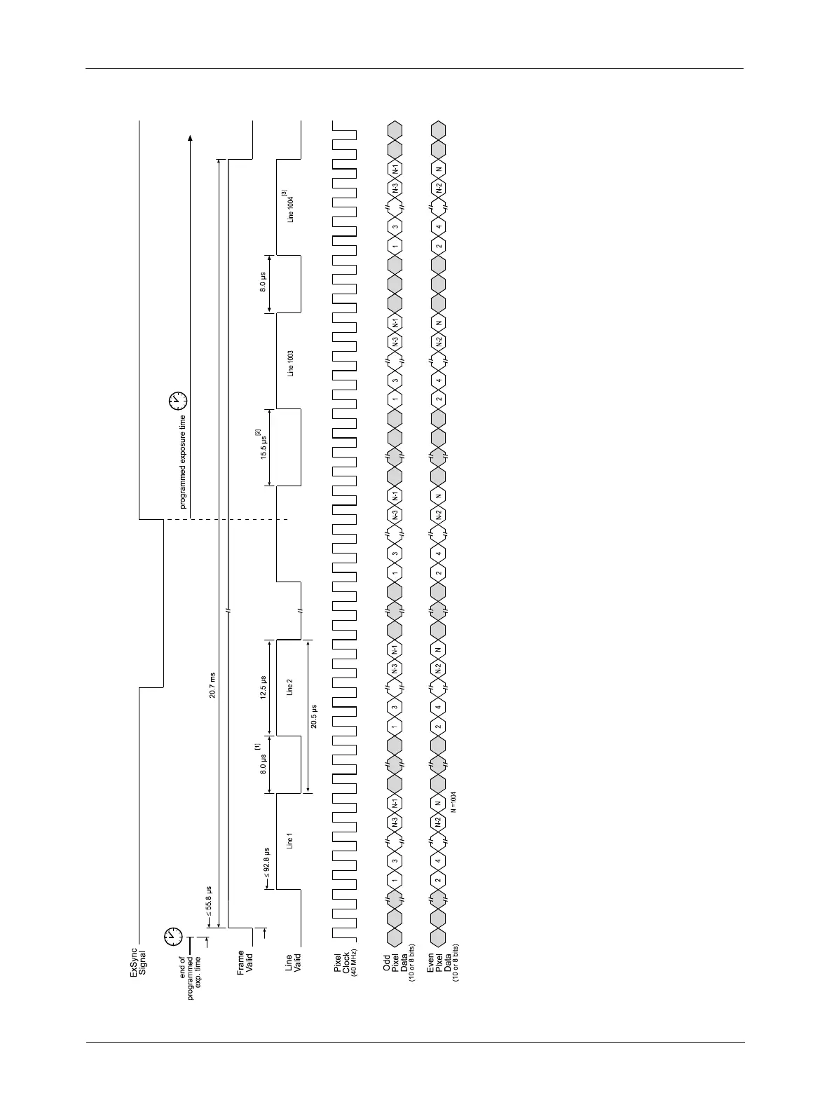 The diagram assumes that the area of interest (AOI) feature is not being used. With the AOI feature enabled, the number of lines transferred and the number of pixels