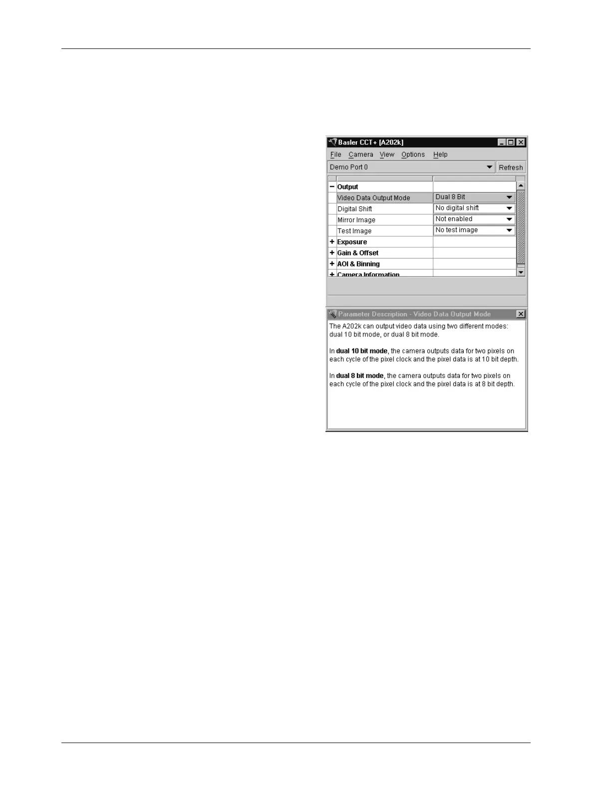 of the camera. This set of parameters is known as the Work Set (see Section 3.12). The CCT+ is
