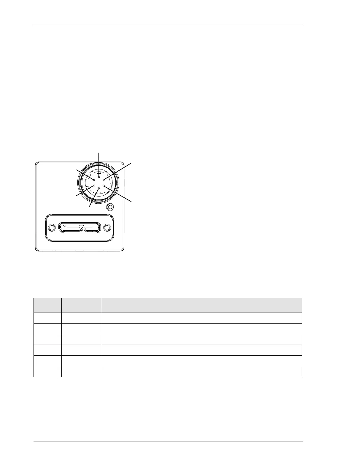 The 6-pin connector is used to access the physical input and output lines on the camera.