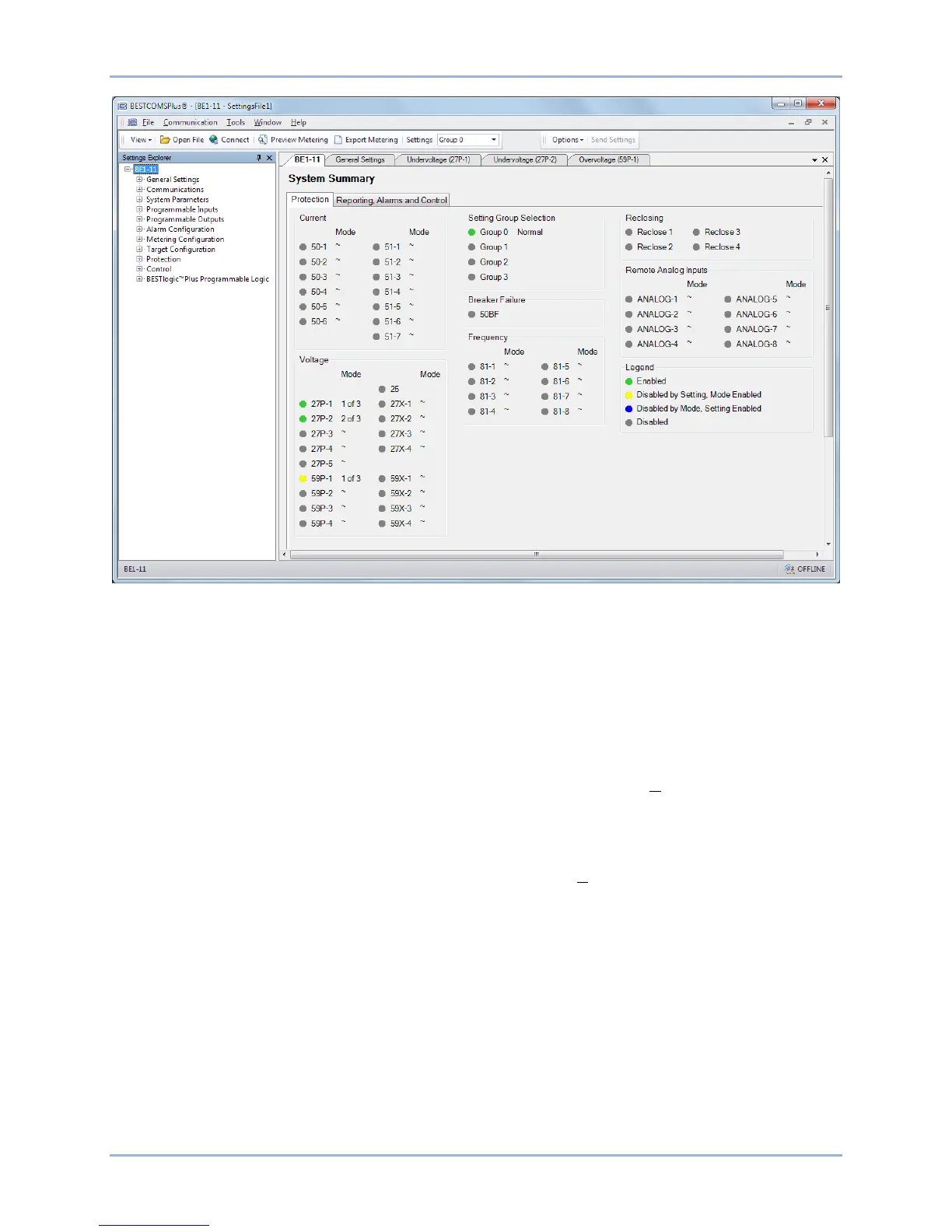 Step 5: In the Settings Explorer, click the “+” next to BE1-11. This expands the sub menus in the tree.