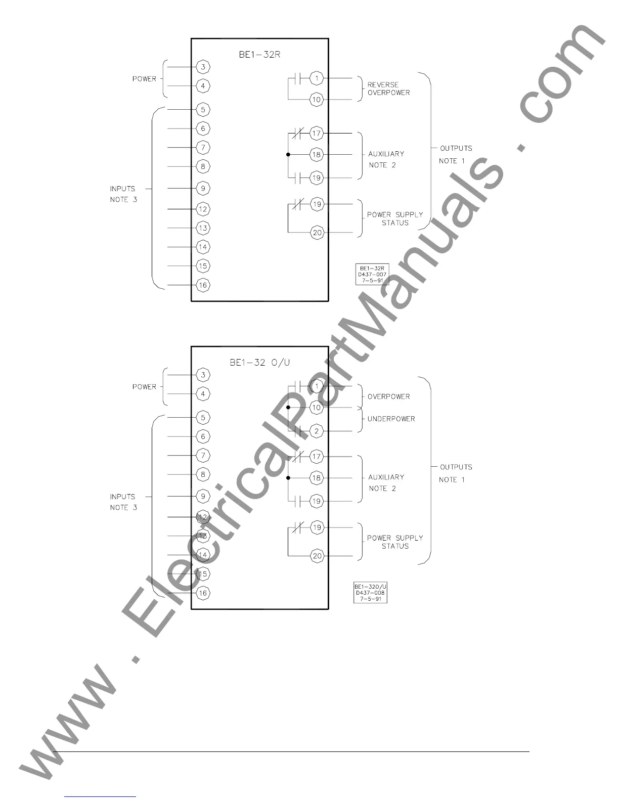 1. The overpower and underpower output contact configuration is determined by the relay style number