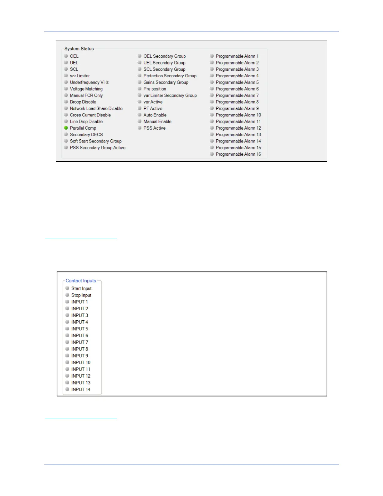 Status indication for the DECS-250’s 16 contact sensing inputs is provided on the BESTCOMSPlus