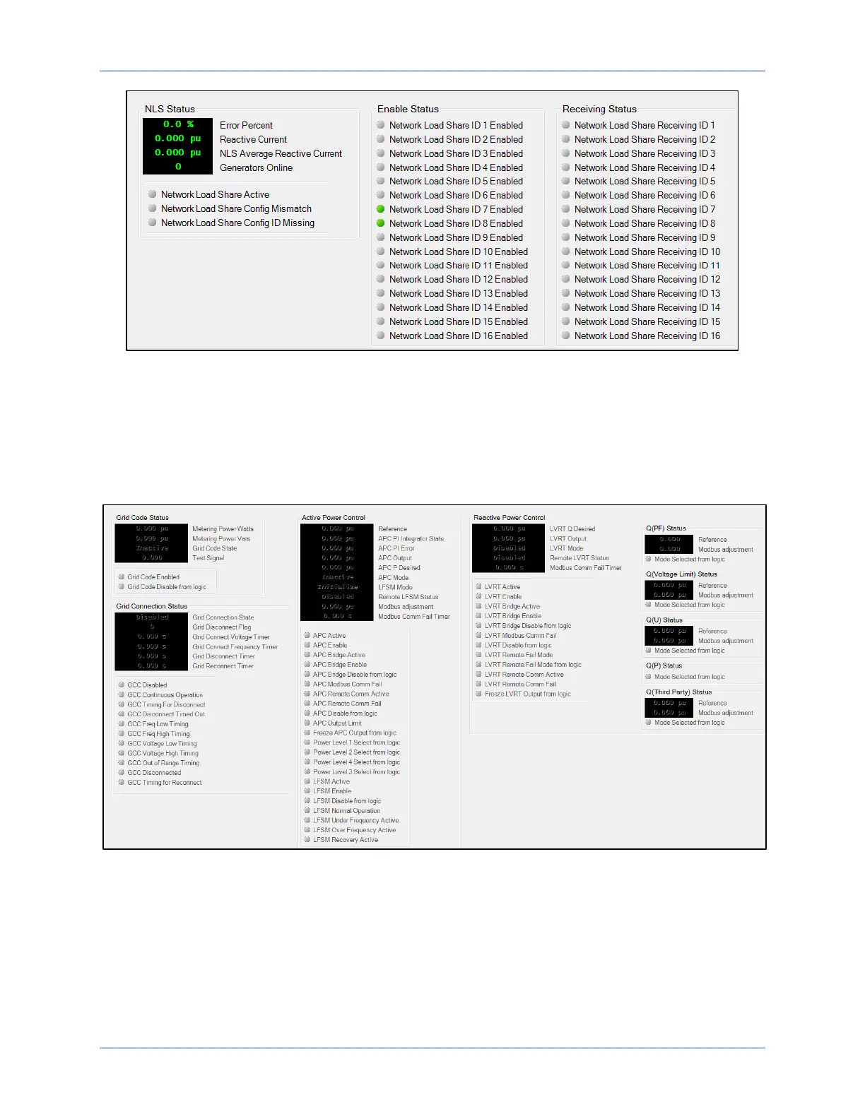 Metering and status related to grid code is shown on this screen (Figure 13-17). Indicators change from