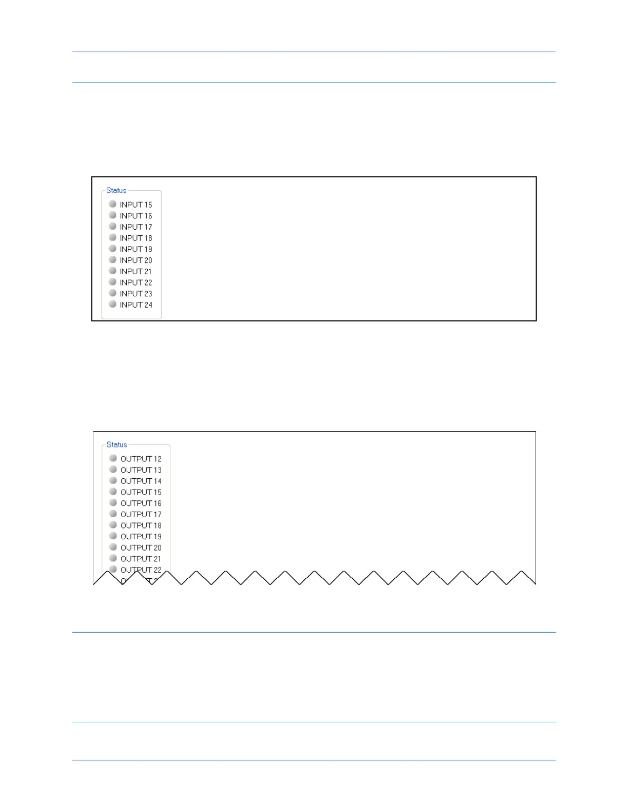 The value and status of the remote contact outputs are shown on this screen. The status is TRUE when