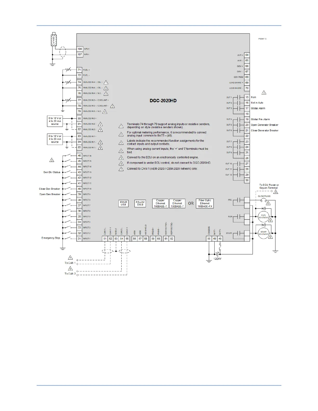 Figure 3-1. Connections for Communication, Senders, Contact Inputs and Outputs, and Control Power