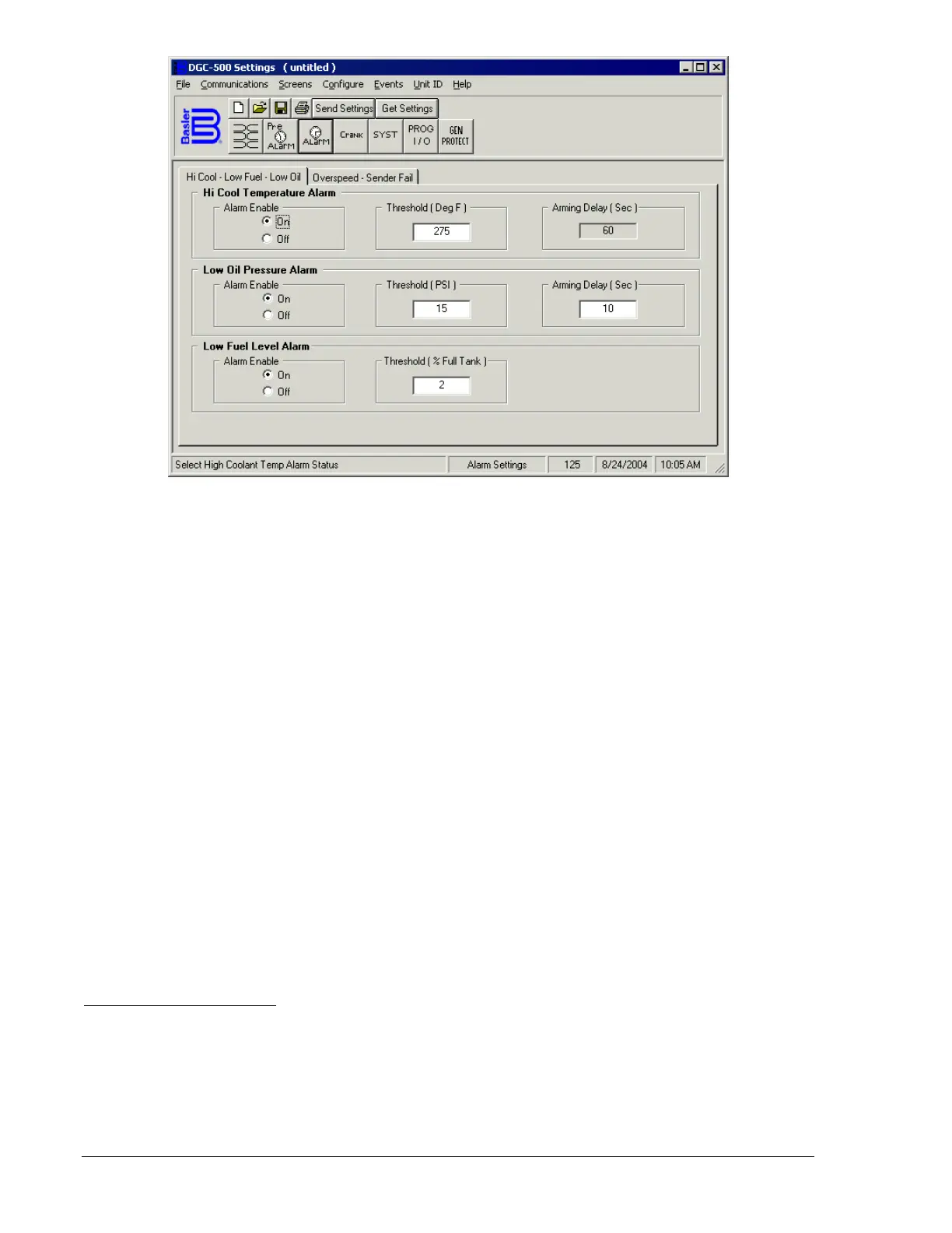 trigger a high coolant temperature alarm. A threshold setting of 100 to 280 degrees Fahrenheit or 38 to