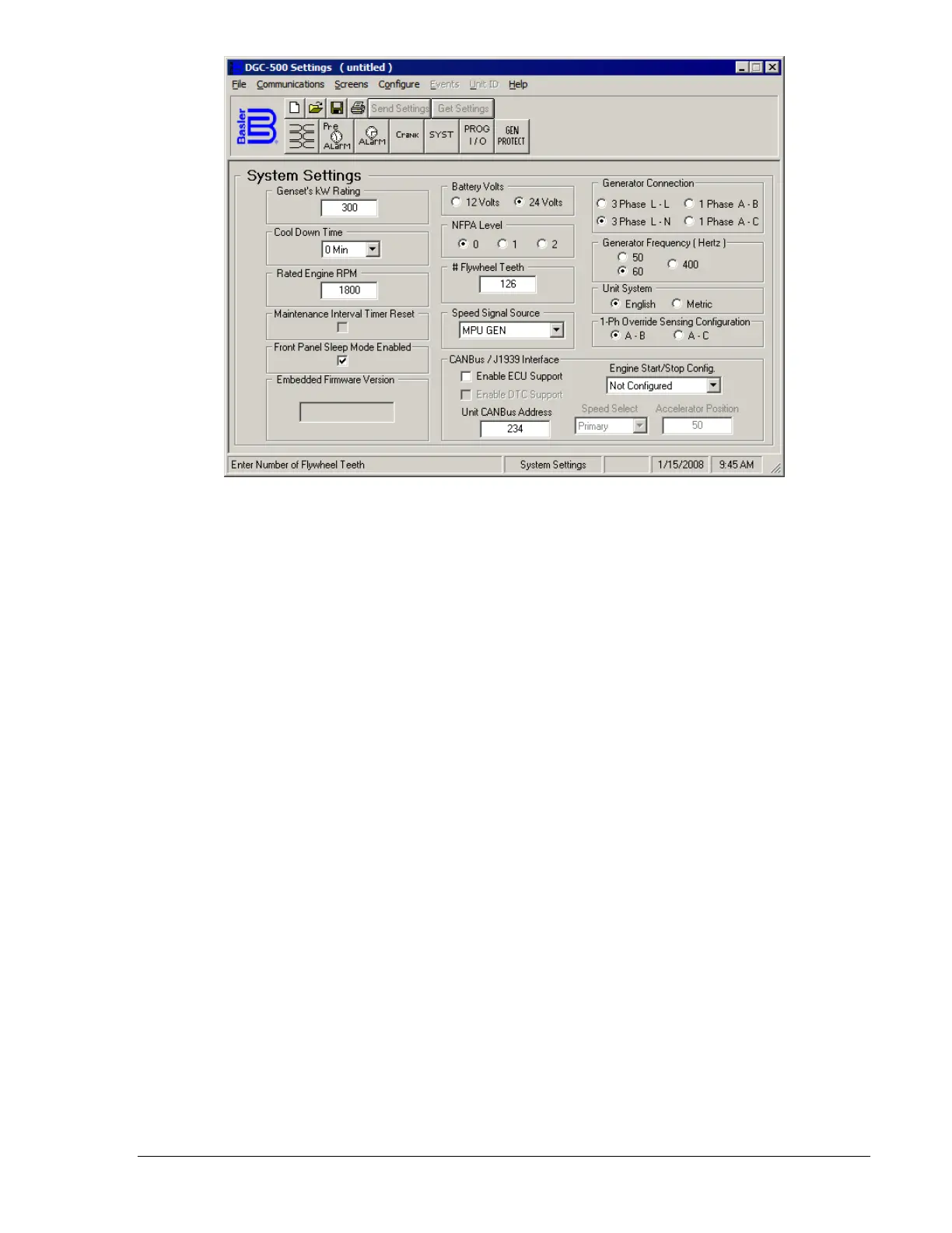 This allows the DGC-500 to receive the engine speed data sent by the ECU via the J1939 protocol.