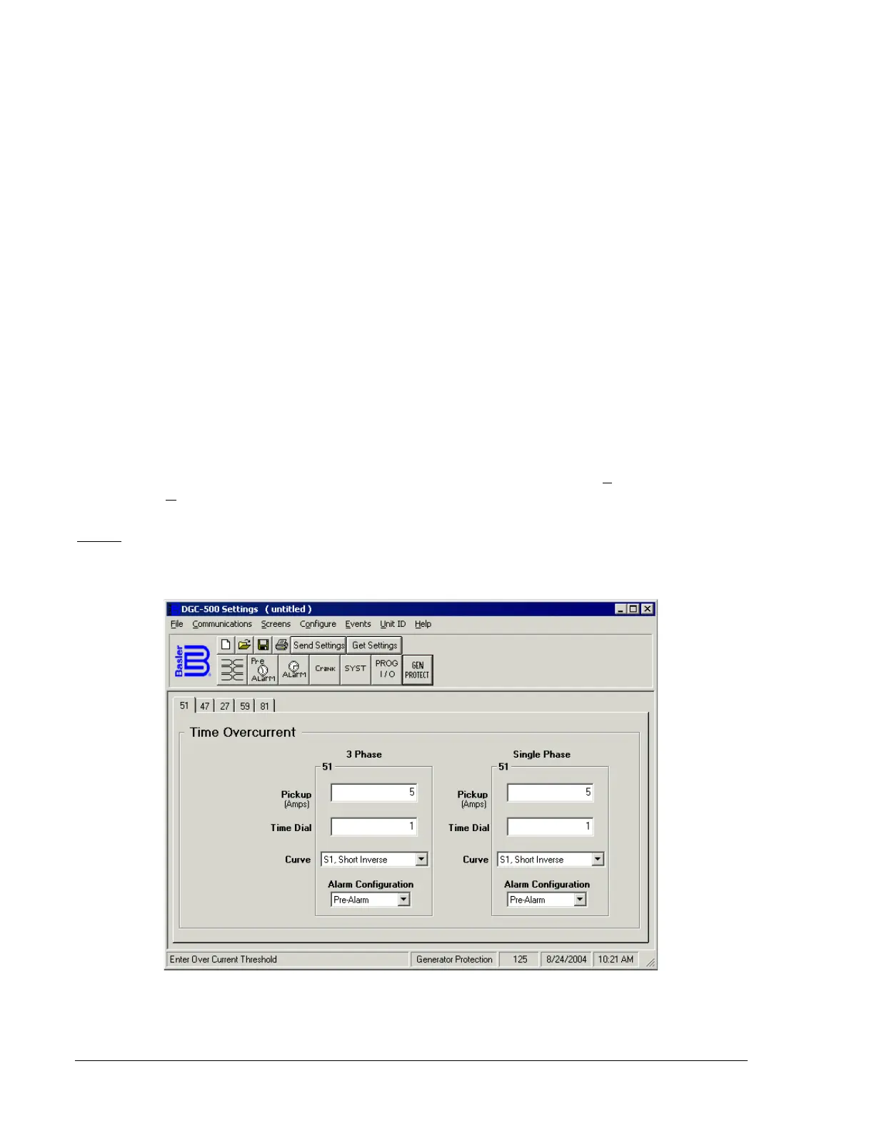 Figure 4-17. Generator Protection Screen, 51 Tab
