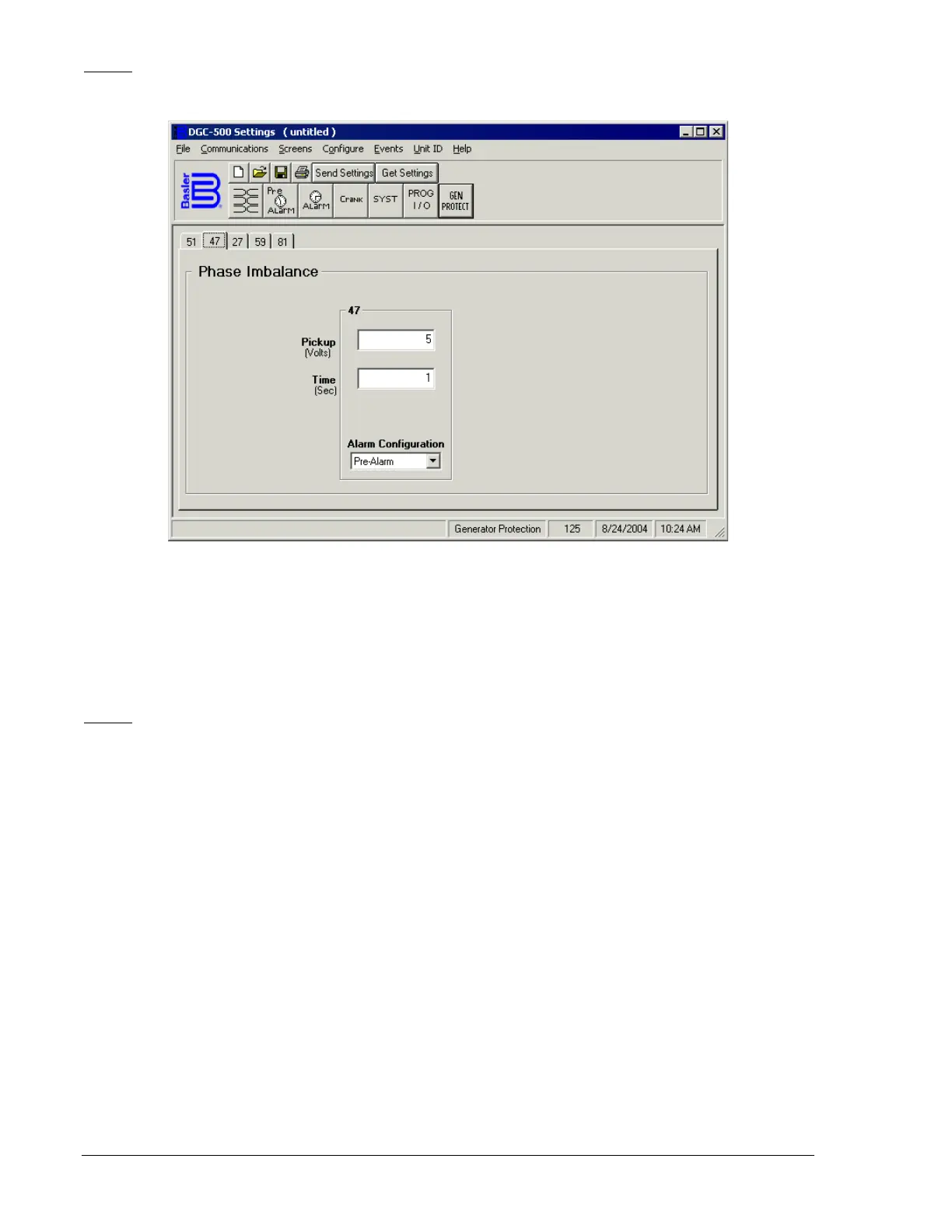47 – Pickup. This setting selects the level of voltage imbalance, between generator phases, that will