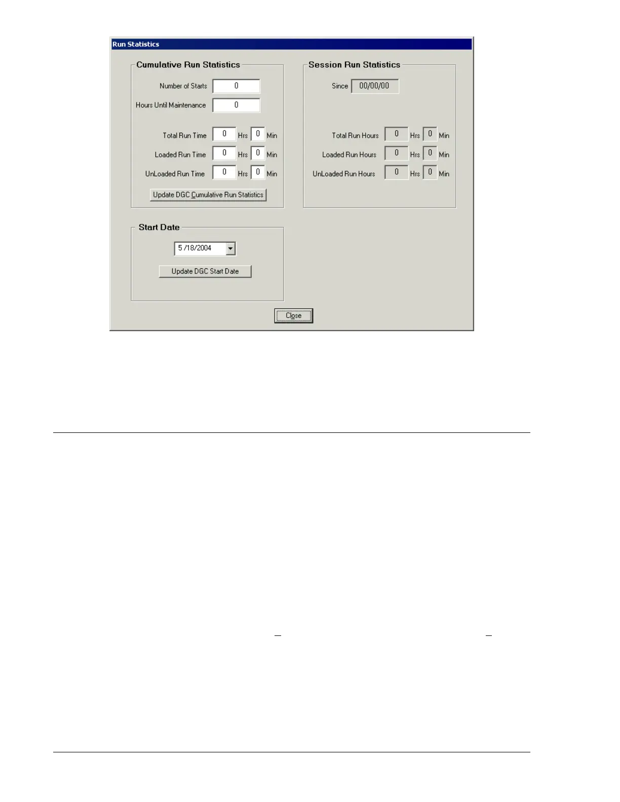 Cumulative Run Statistics. This area of the Run Statistics screen displays the total running time, unloaded