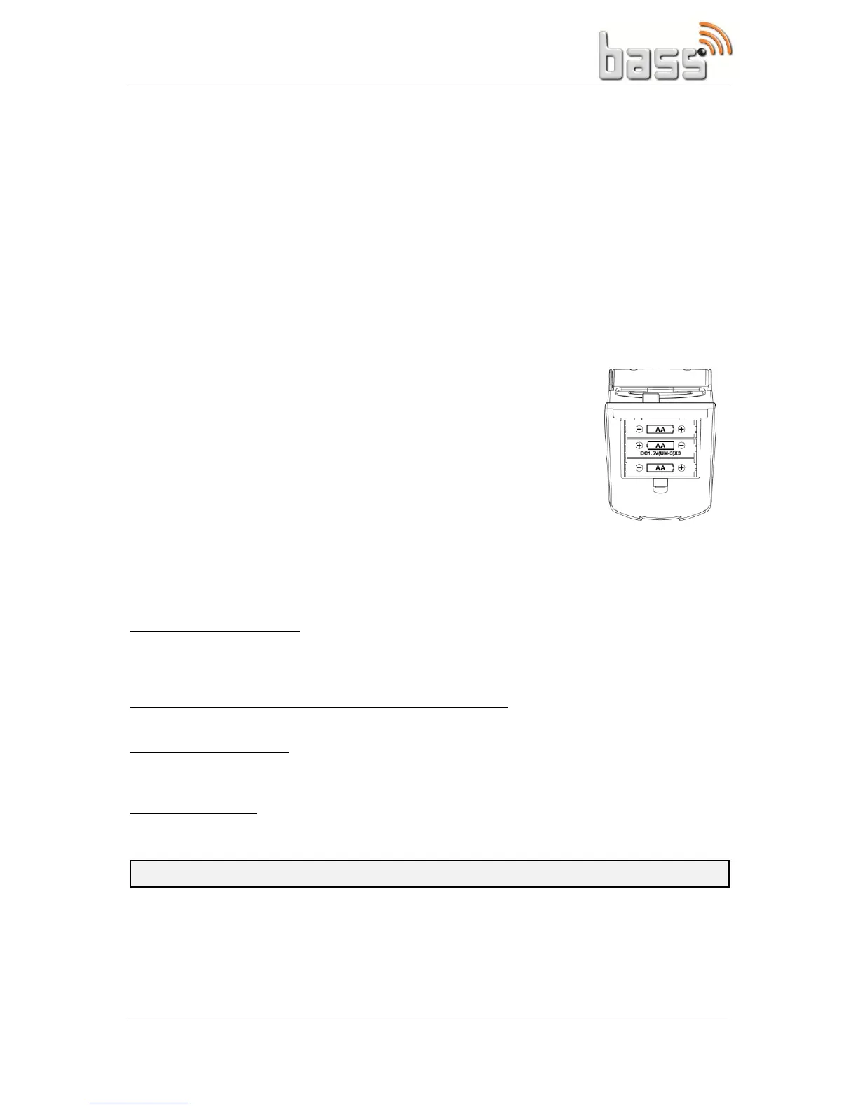 Follow the polarity diagram shown inside the compartment and install 6 x AA (UM-3) Alkaline type bat-