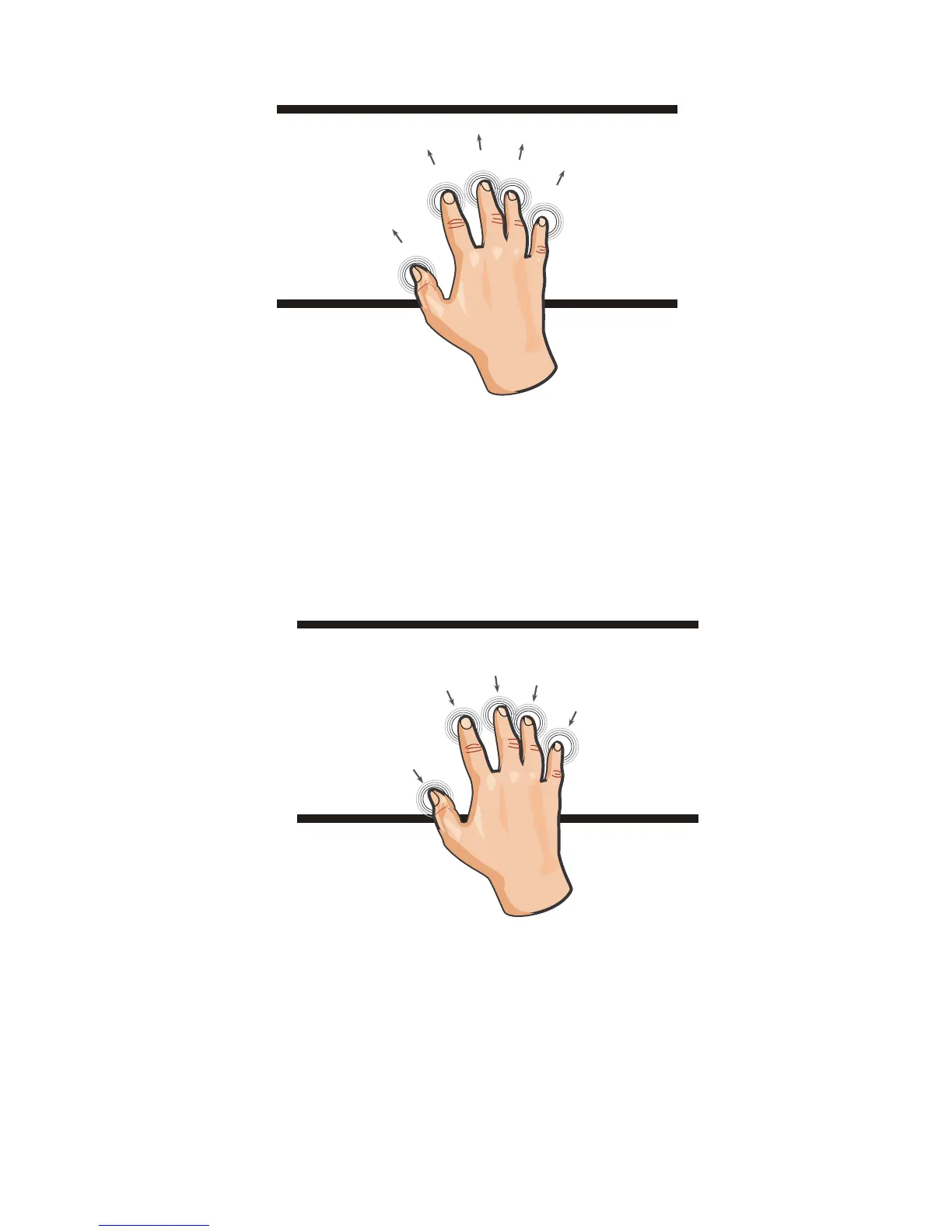 Five fingers: Flick with five fingers is show the desk.(The system
