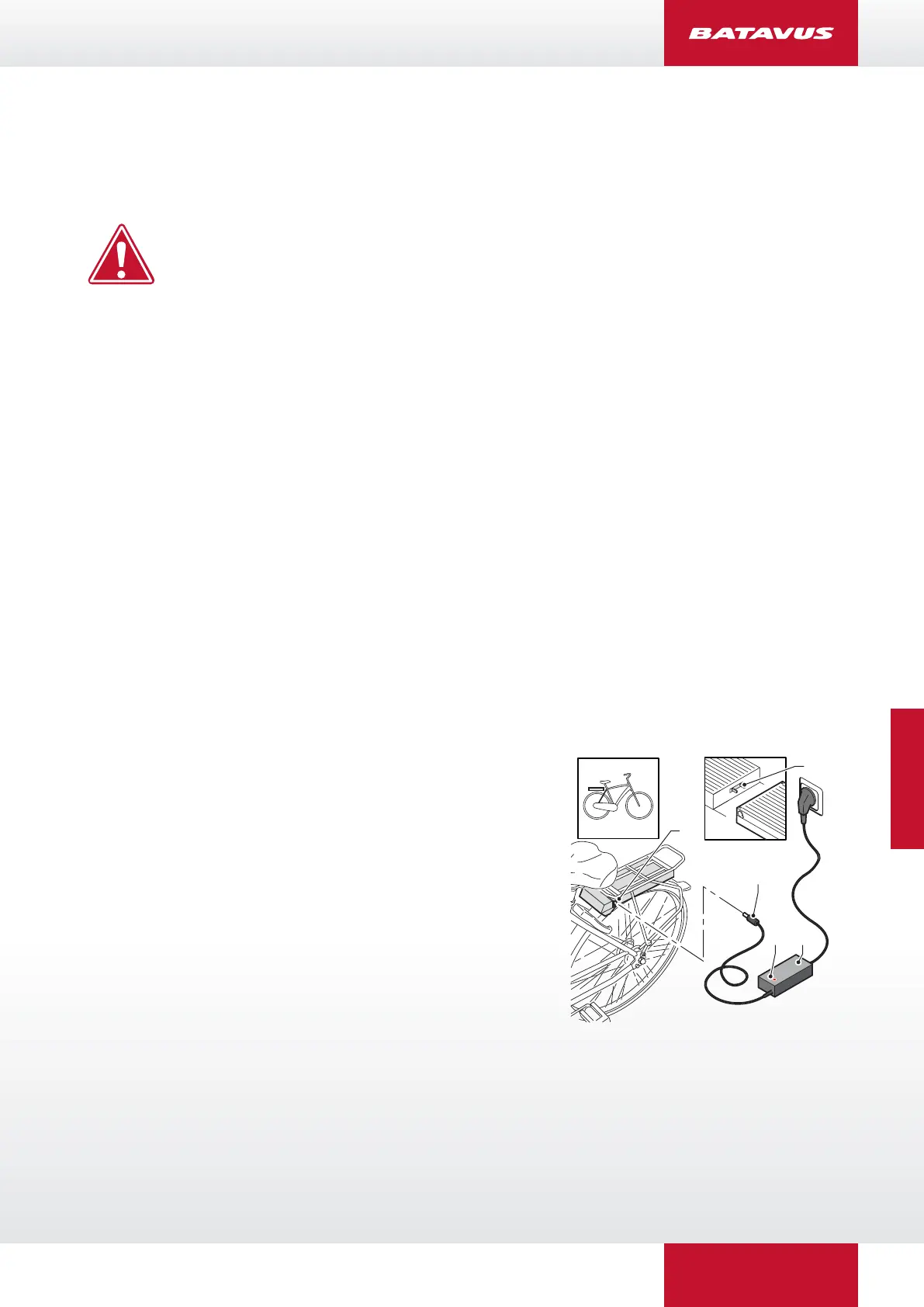 • Brug kun den lader, som følger med Batavus E-go®. Hvis der bruges andre batteriladere,