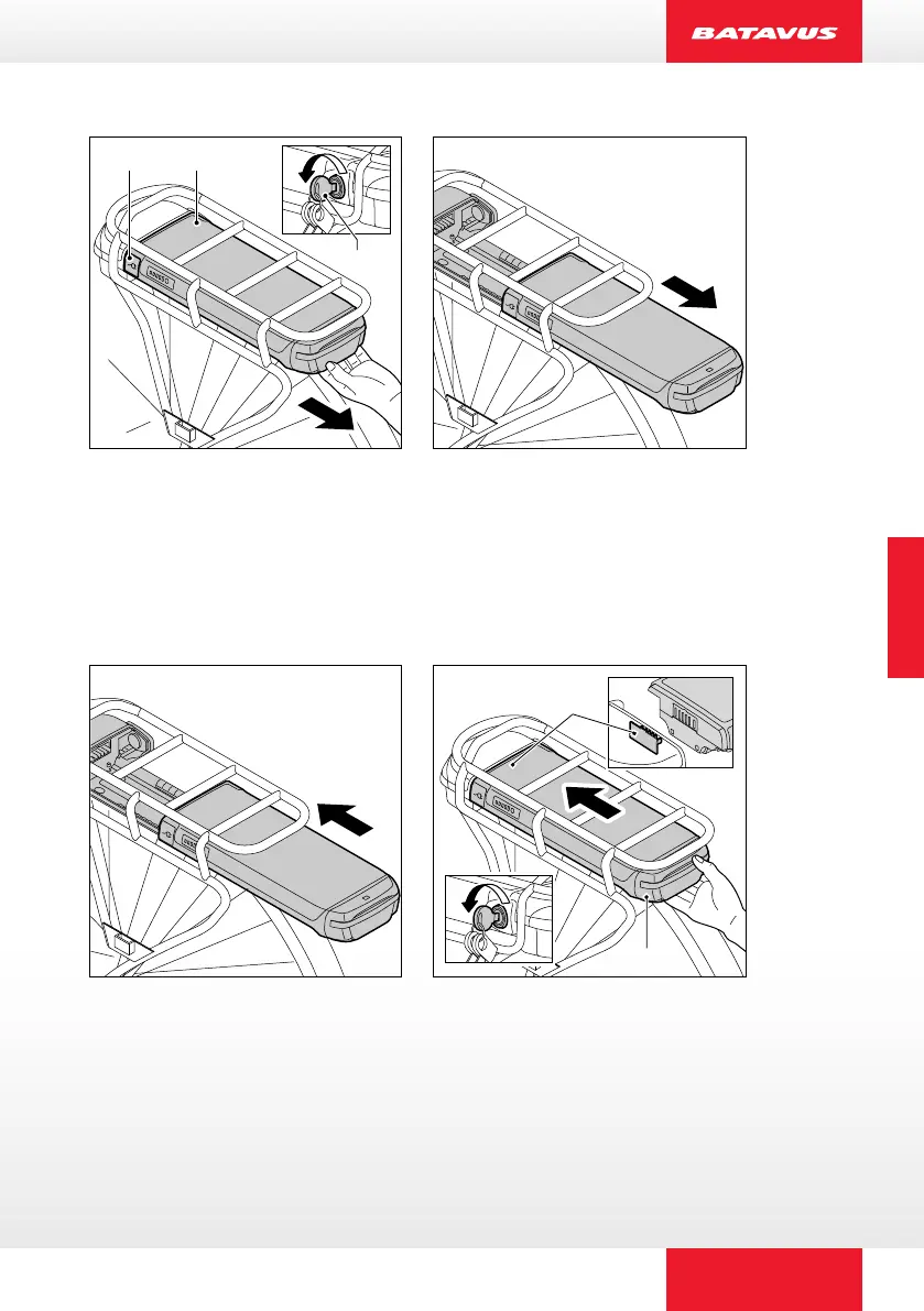 3. Ziehen Sie die Batterie (B) vorsichtig aus dem Gepäckträger.