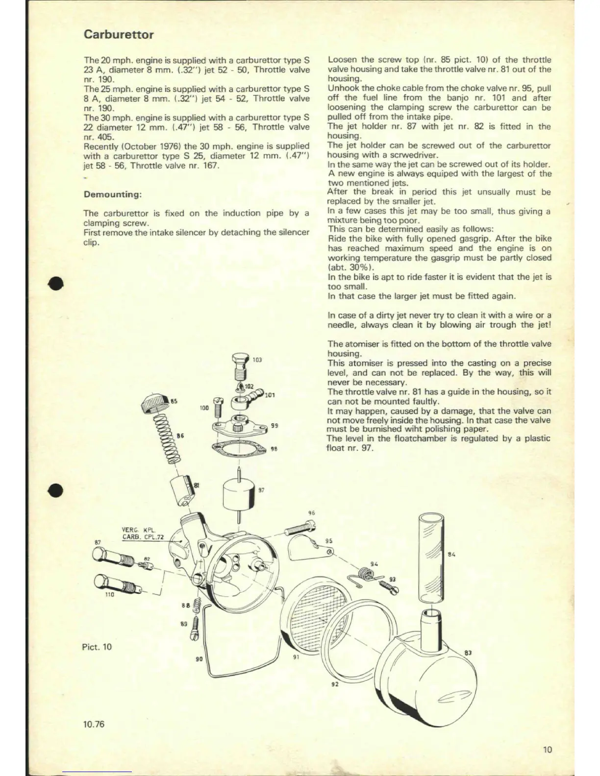 Loosen the screw top (nr. 85 pict. 10) of the throttle