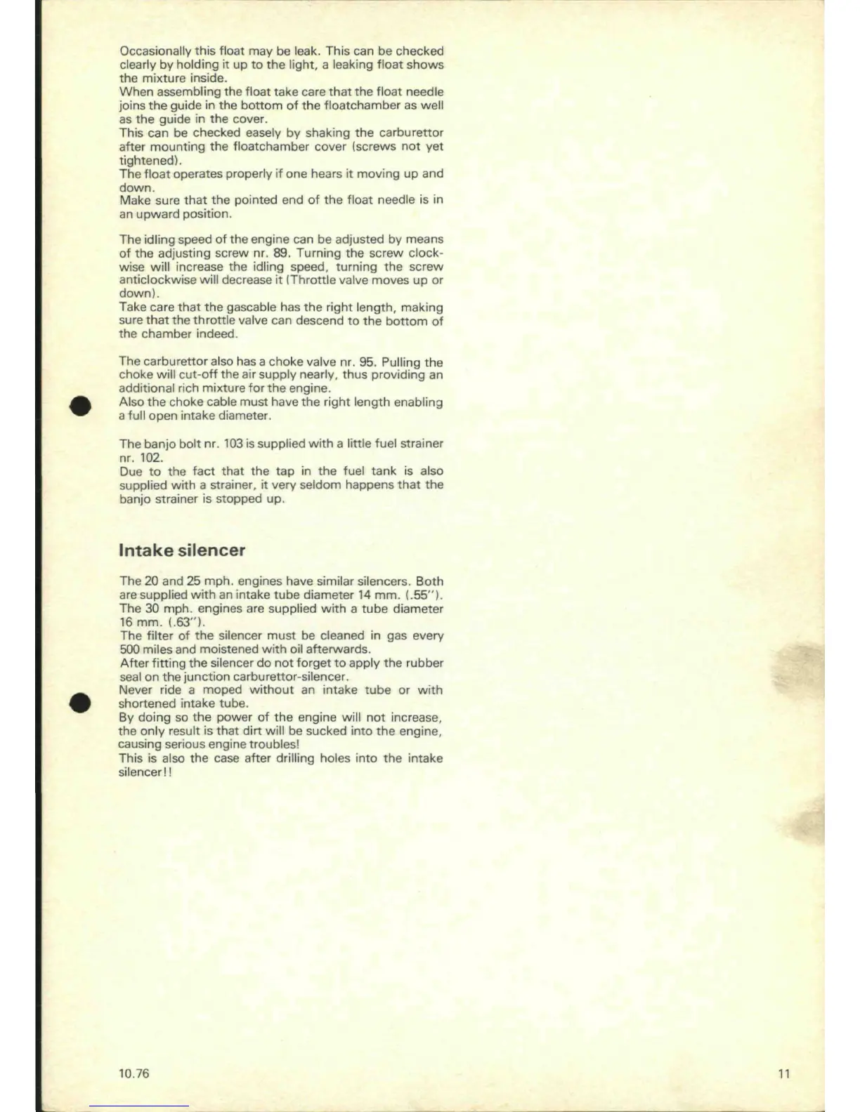 The banjo bolt nr. 103 is supplied with a little fuel strainer