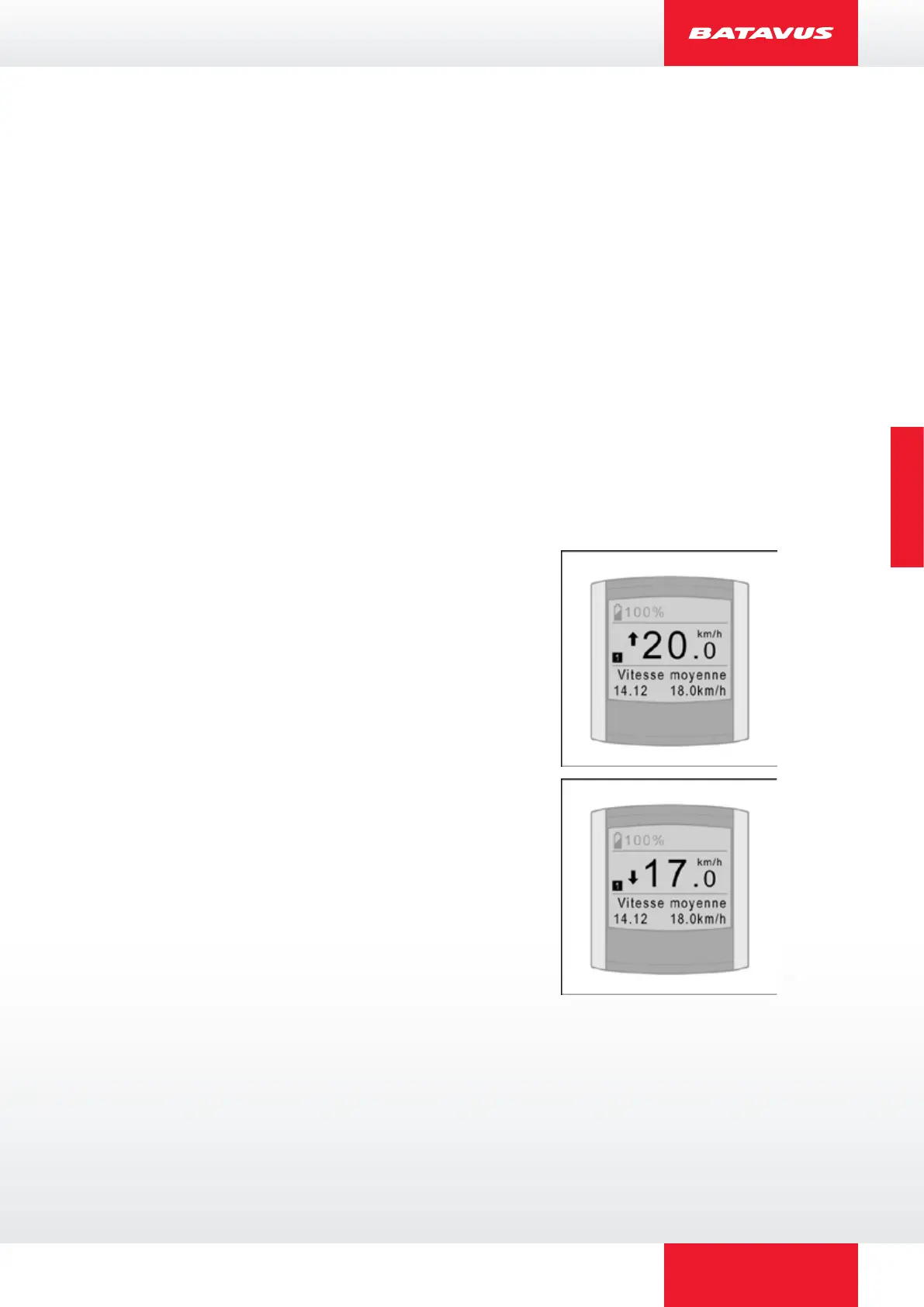 L'indicateur de vitesse moyenne indique, durant le pédalage, si la vitesse