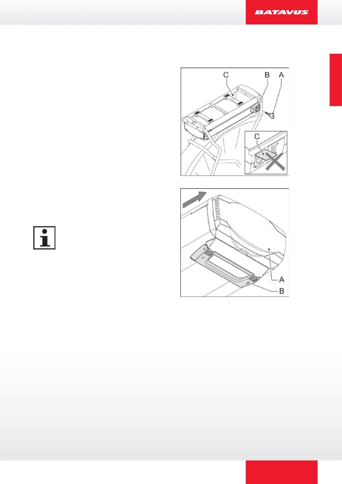 2. Zorg ervoor dat het klepje (C) van de