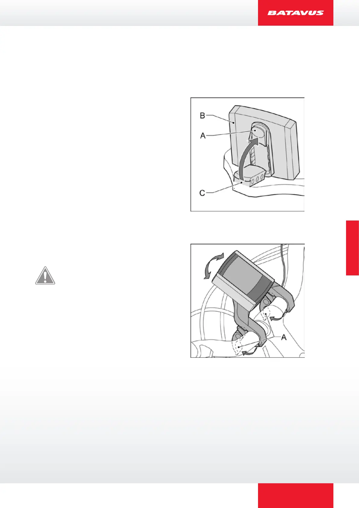 Befestigen: Das Display (A) schräg auf